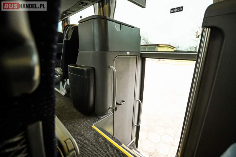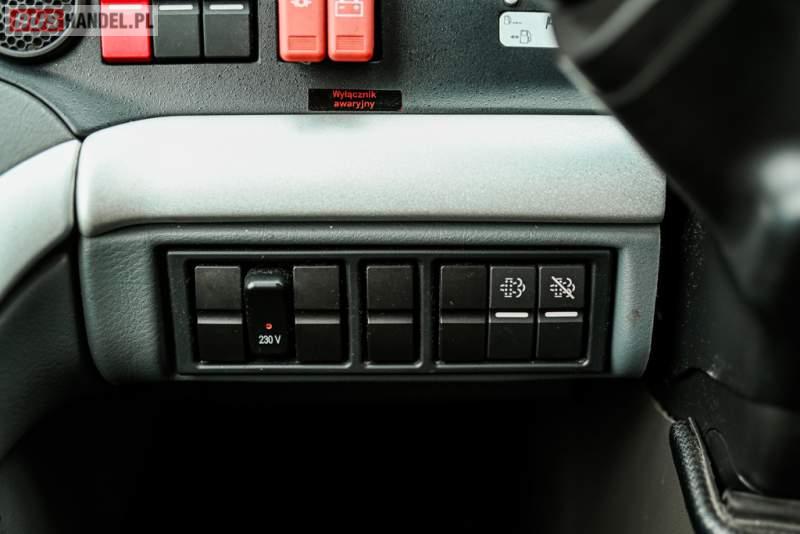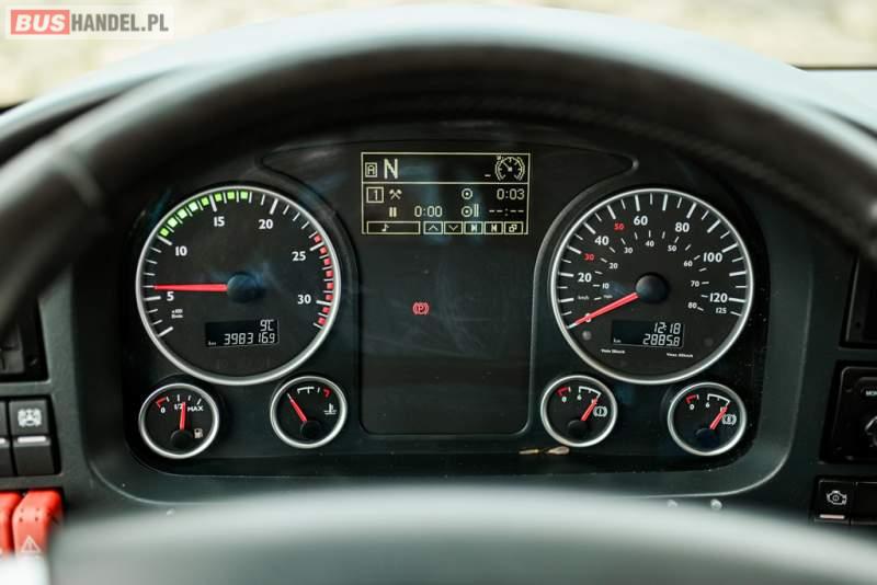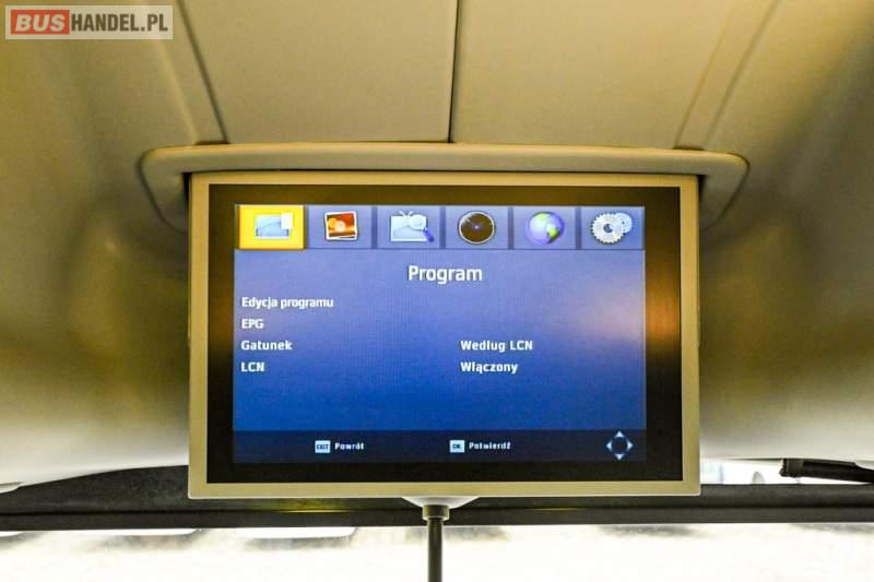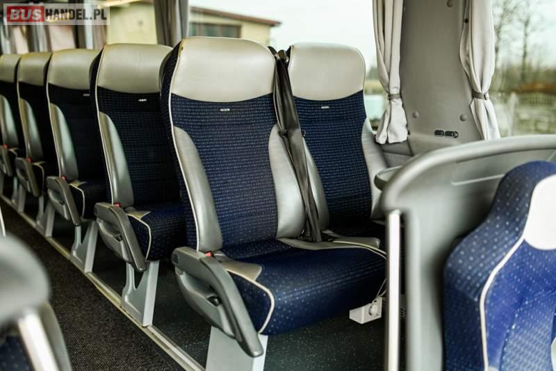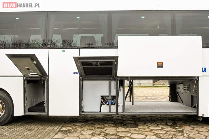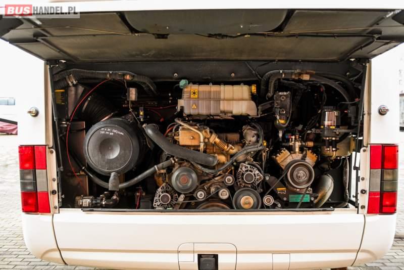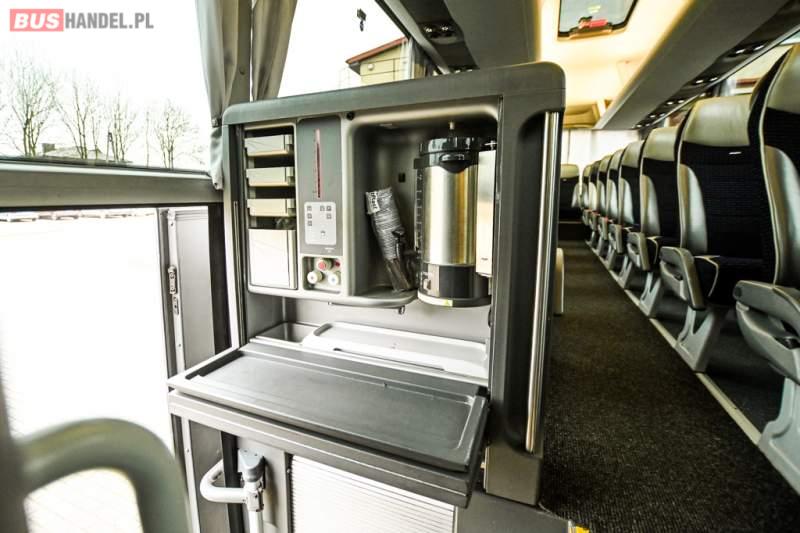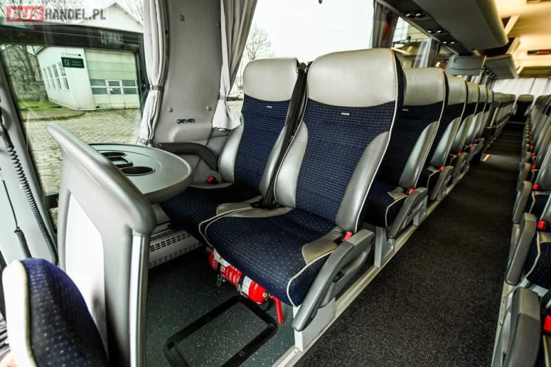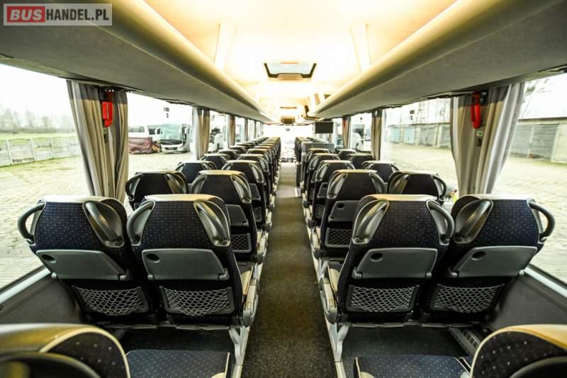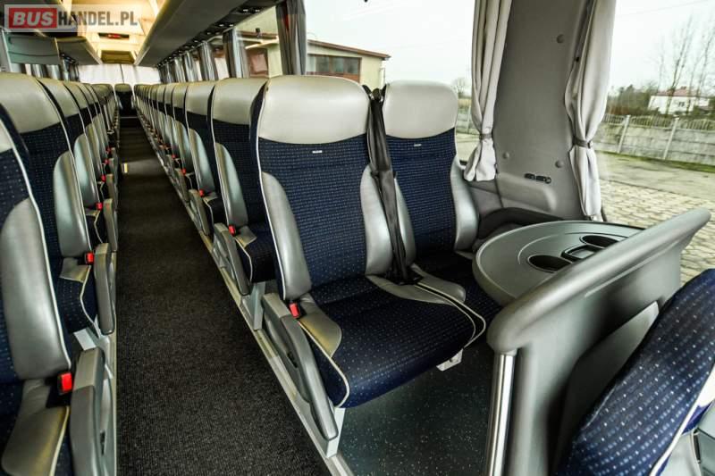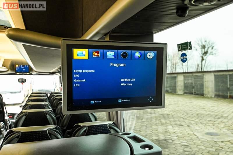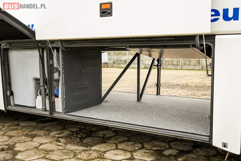 : klimatyzacja, WC, lodówka, caffebar, kabina sypialna, oświetlenie indywidualne, nawiewy dyszowe, podnóżki, stoliczki, siateczki, ABS, ASR, tempomat, retarder, telefon, nawigacja, CD, mikrofon, radio, fotele odchylane i rozsuwane, wyświetlacz matrix, sejf, regulacja wysokości nadwozia, centralny zamek, podwójne szyby boczne, wspomaganie kierownicy, aluminiowe felgi, elektryczne lusterka, ogrzewanie stacjonarne, DVD, ESP