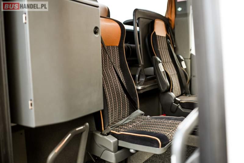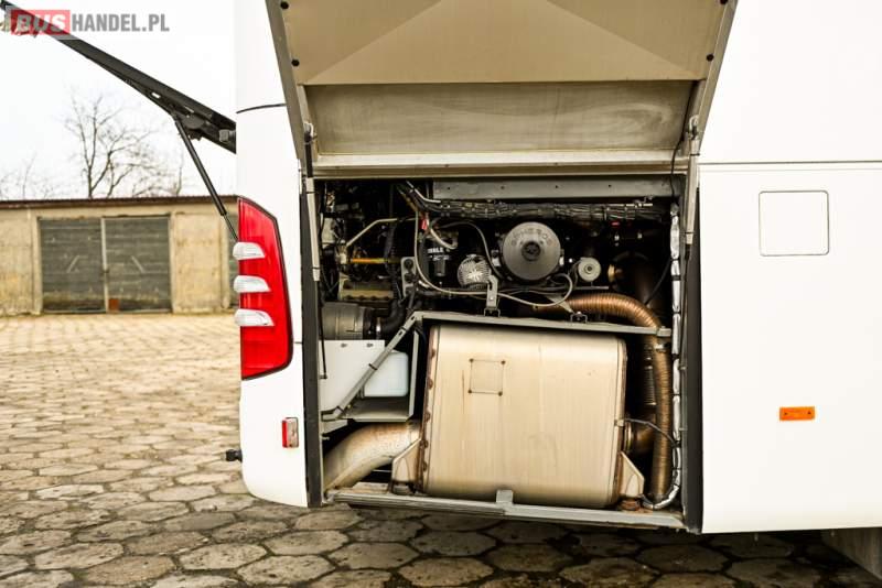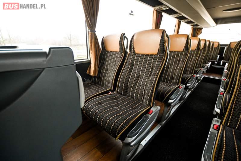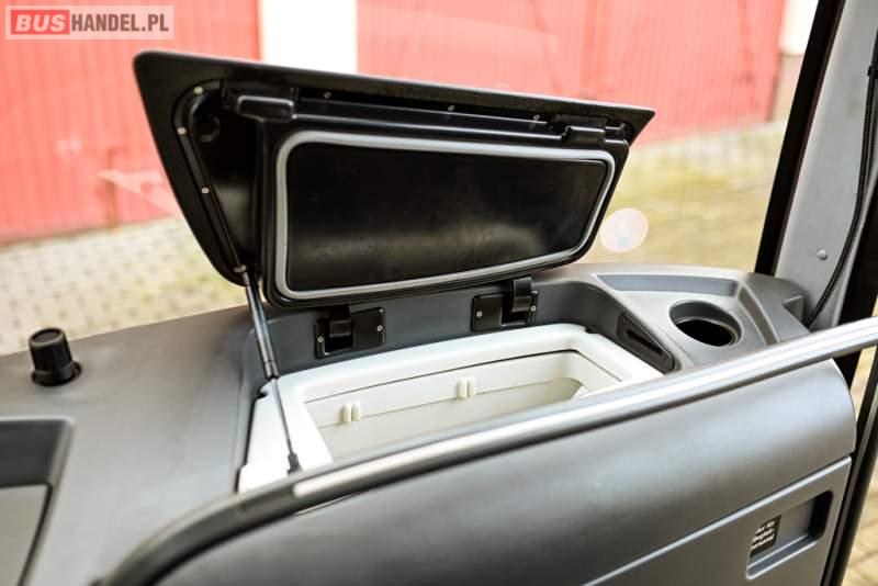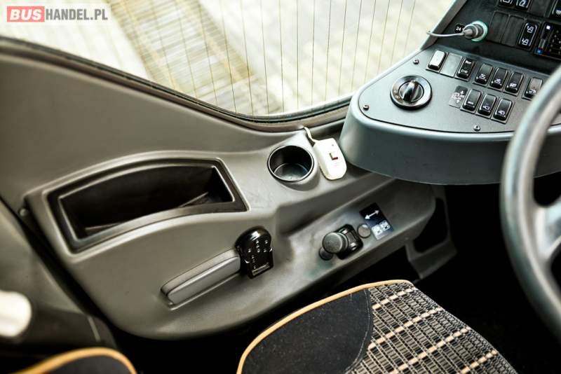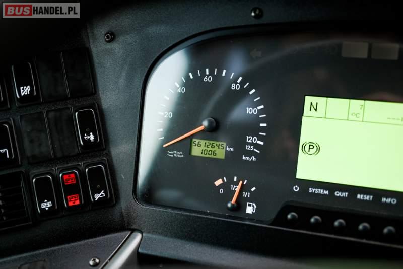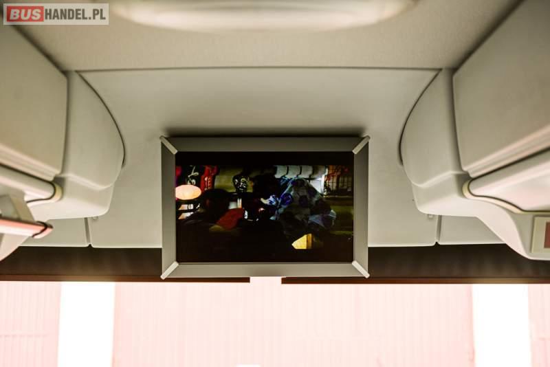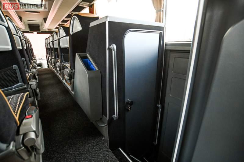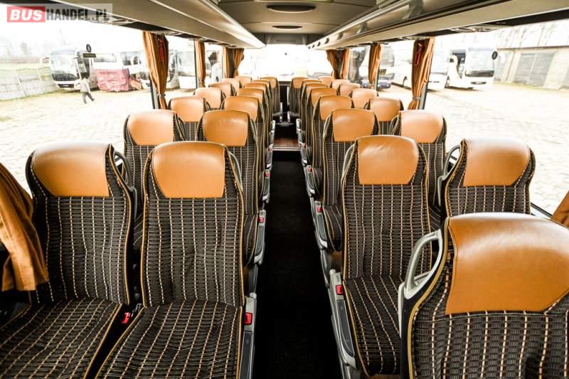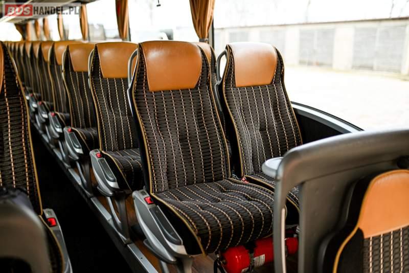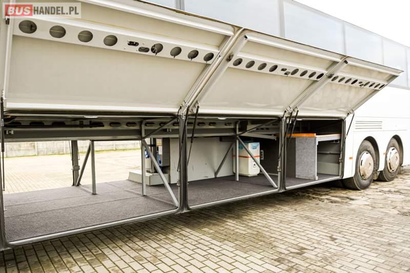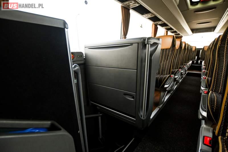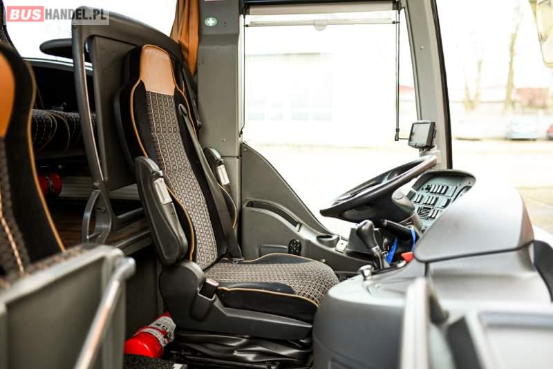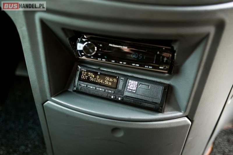 : klimatyzacja, WC, lodówka, caffebar, kabina sypialna, oświetlenie indywidualne, nawiewy dyszowe, podnóżki, stoliczki, siateczki, ABS, ASR, tempomat, retarder, telefon, nawigacja, CD, mikrofon, radio, fotele odchylane i rozsuwane, kuchenka mikrofalowa, wyświetlacz matrix, sejf, regulacja wysokości nadwozia, centralny zamek, podwójne szyby boczne, wspomaganie kierownicy, elektryczne lusterka, ogrzewanie stacjonarne, DVD, hak holowniczy, ESP