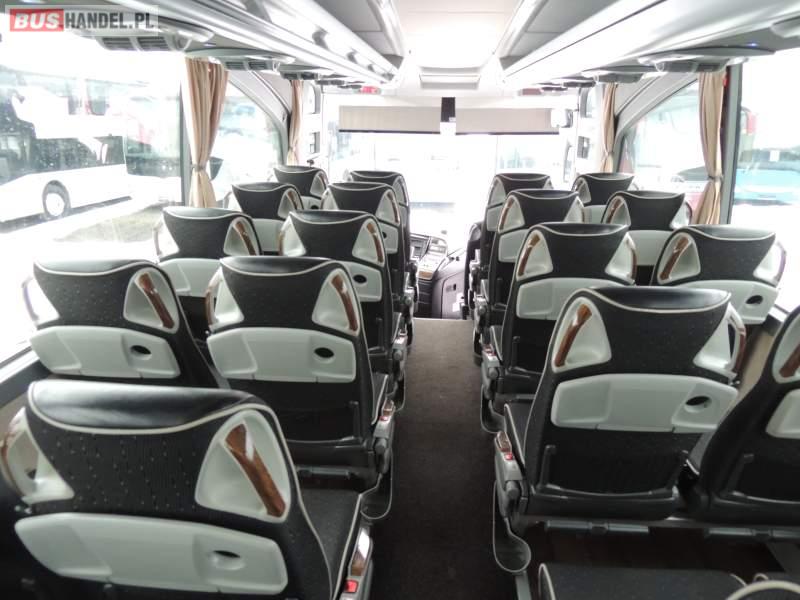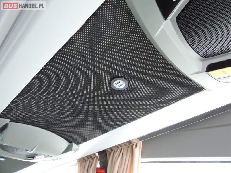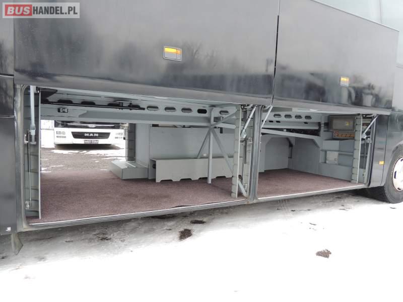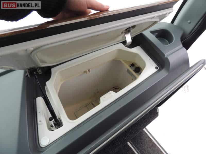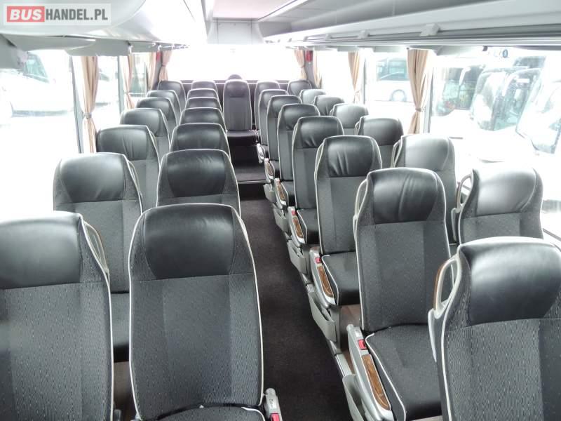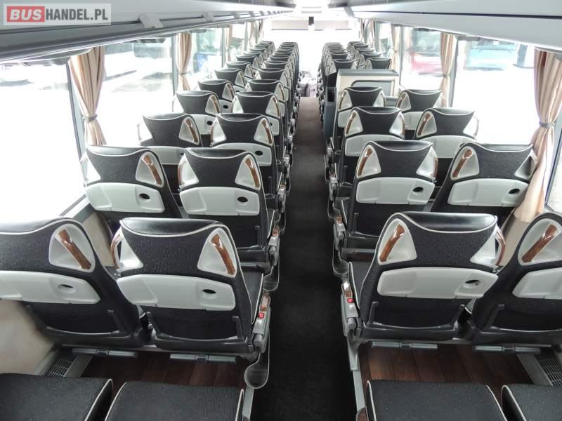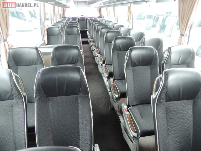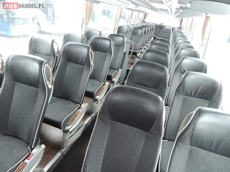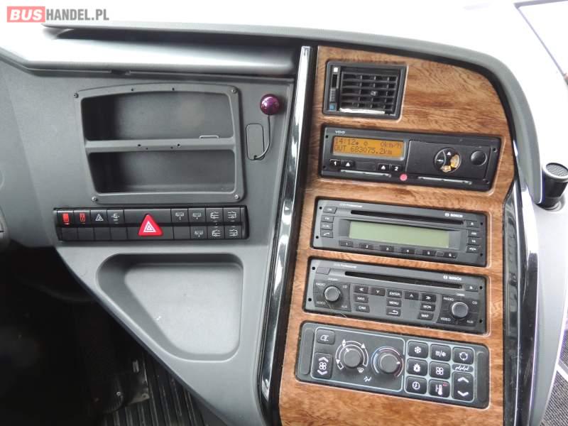 : klimatyzacja, video, WC, lodówka, oświetlenie indywidualne, nawiewy dyszowe, podnóżki, ABS, ASR, tempomat, retarder, CD, radio, fotele odchylane i rozsuwane, regulacja wysokości nadwozia, centralny zamek, podwójne szyby boczne, wspomaganie kierownicy, elektryczne lusterka, ogrzewanie stacjonarne, DVD, ESP