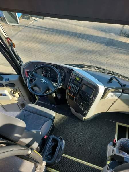 : klimatyzacja, video, WC, lodówka, kabina sypialna, oświetlenie indywidualne, nawiewy dyszowe, fotele odchylane, podnóżki, stoliczki, siateczki, ABS, ASR, tempomat, retarder, CD, mikrofon, radio, sejf, regulacja wysokości nadwozia, centralny zamek, podwójne szyby boczne, wspomaganie kierownicy, elektryczne lusterka, ogrzewanie stacjonarne, DVD, ESP