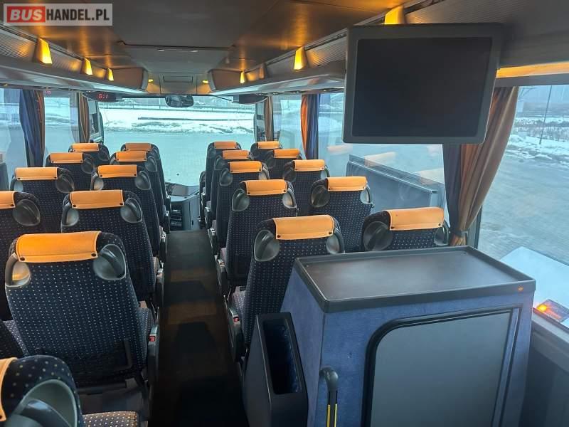 : klimatyzacja, video, WC, lodówka, caffebar, kabina sypialna, oświetlenie indywidualne, nawiewy dyszowe, fotele odchylane, podnóżki, ABS, ASR, tempomat, retarder, telefon, nawigacja, CD, mikrofon, radio, fotele odchylane i rozsuwane, wyświetlacz matrix, sejf, regulacja wysokości nadwozia, centralny zamek, podwójne szyby boczne, wspomaganie kierownicy, elektryczne lusterka, ogrzewanie stacjonarne, DVD, hak holowniczy, ESP
