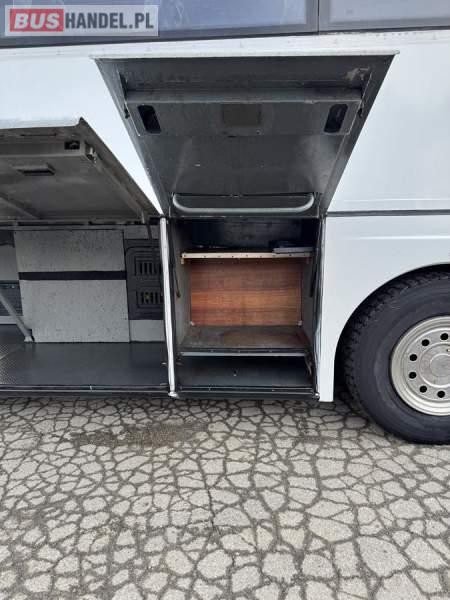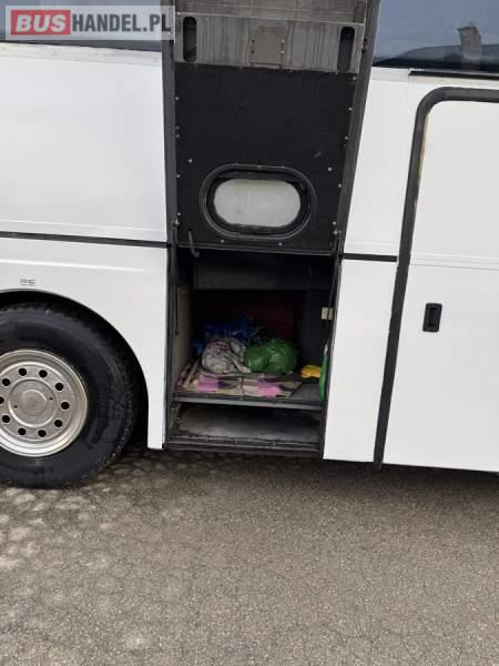 : klimatyzacja, WC, kabina sypialna, oświetlenie indywidualne, nawiewy dyszowe, fotele odchylane, siateczki, ABS, ASR, retarder, mikrofon, radio, centralny zamek, podwójne szyby boczne, wspomaganie kierownicy, elektryczne lusterka, ogrzewanie stacjonarne