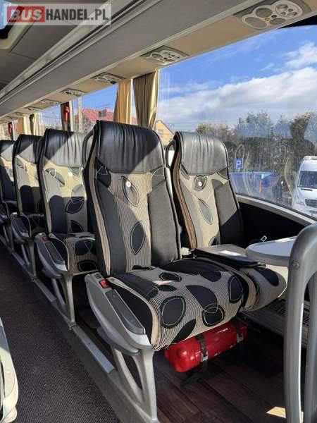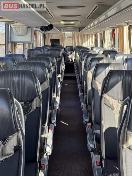 : lodówka, caffebar, fotele odchylane, oświetlenie indywidualne, nawiewy dyszowe, siateczki, ABS, ASR, tempomat, retarder, CD, podnóżki, stoliczki, mikrofon, klimatyzacja, radio, wyświetlacz matrix, regulacja wysokości nadwozia, centralny zamek, podwójne szyby boczne, wspomaganie kierownicy, elektryczne lusterka, DVD, ogrzewanie stacjonarne, ESP