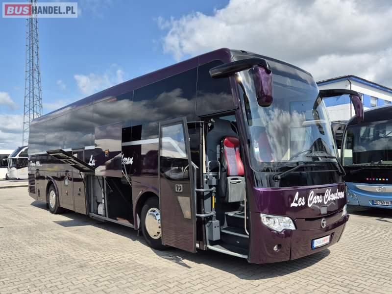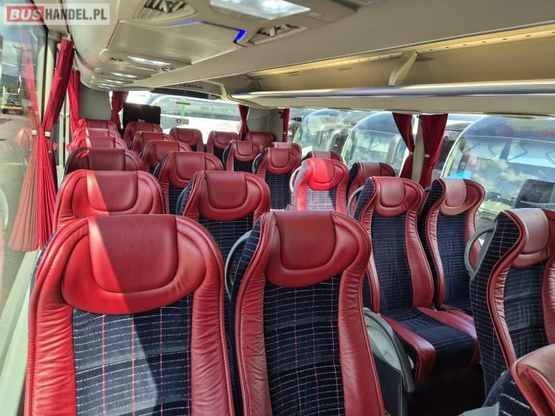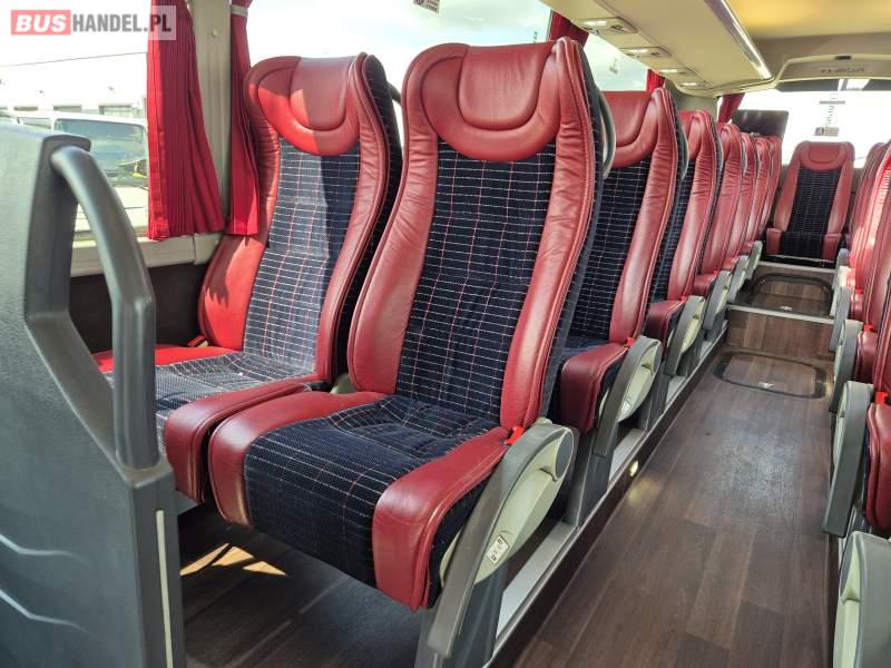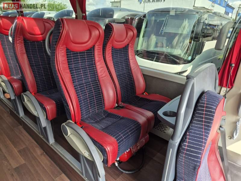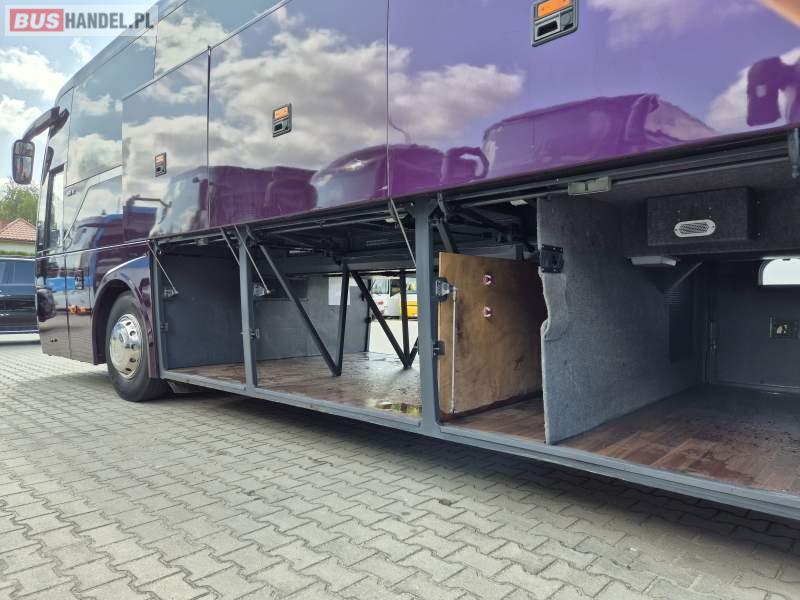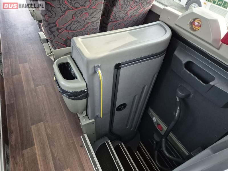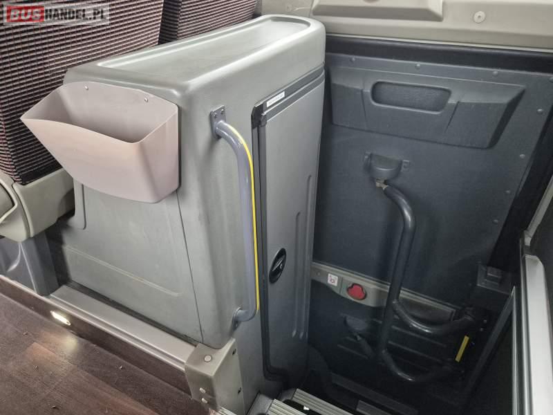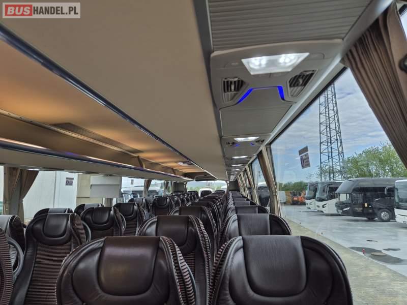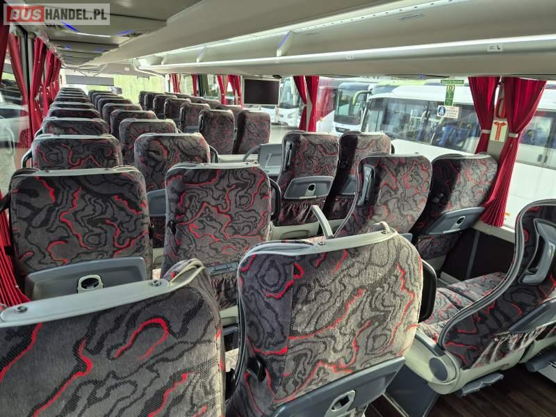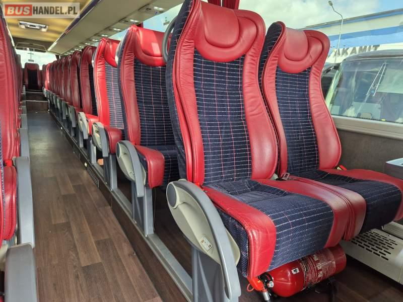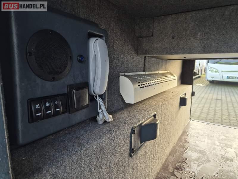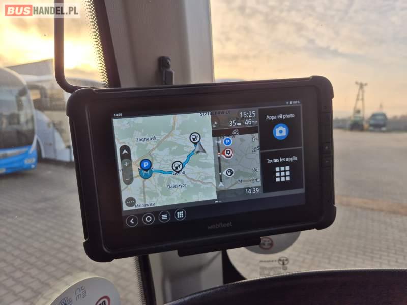 : klimatyzacja, video, WC, lodówka, caffebar, kabina sypialna, oświetlenie indywidualne, fotele odchylane, podnóżki, stoliczki, siateczki, ABS, tempomat, retarder, nawigacja, CD, mikrofon, radio, rampa dla inwalidów, regulacja wysokości nadwozia, centralny zamek, podwójne szyby boczne, wspomaganie kierownicy, elektryczne lusterka, ogrzewanie stacjonarne, DVD