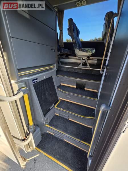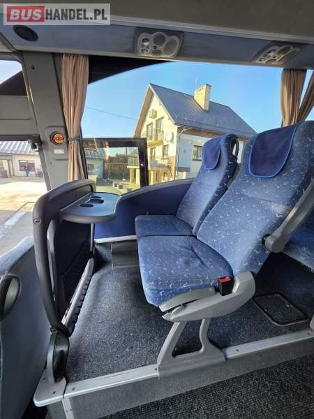 : lodówka, caffebar, oświetlenie indywidualne, nawiewy dyszowe, siateczki, ABS, ASR, tempomat, retarder, podnóżki, stoliczki, mikrofon, klimatyzacja, radio, sejf, centralny zamek, podwójne szyby boczne, wspomaganie kierownicy, elektryczne lusterka, fotele odchylane i rozsuwane, ogrzewanie stacjonarne, ESP