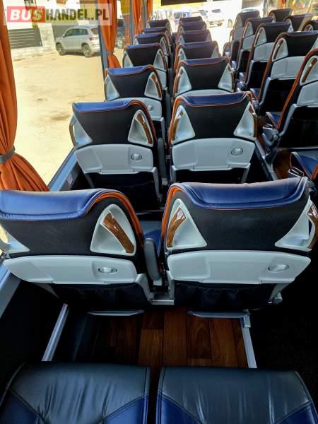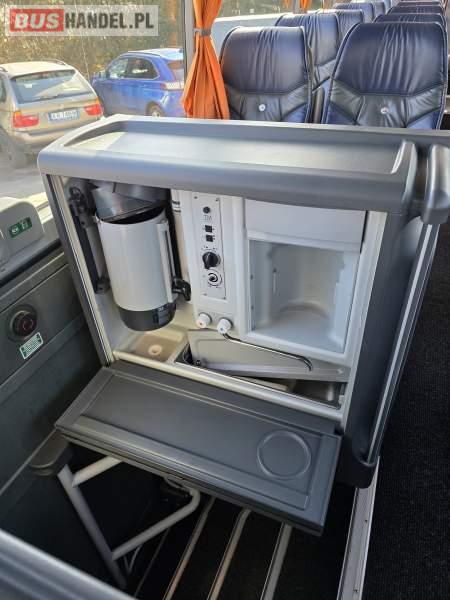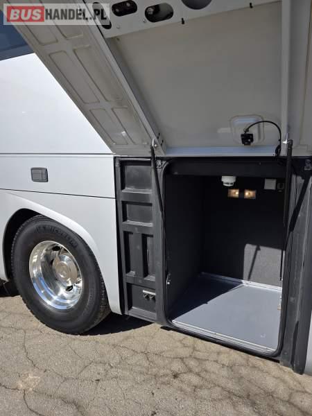 : klimatyzacja, WC, lodówka, caffebar, kabina sypialna, oświetlenie indywidualne, nawiewy dyszowe, podnóżki, stoliczki, siateczki, ABS, ASR, tempomat, retarder, mikrofon, radio, fotele odchylane i rozsuwane, sejf, regulacja wysokości nadwozia, centralny zamek, podwójne szyby boczne, wspomaganie kierownicy, elektryczne lusterka, ogrzewanie stacjonarne, DVD, ESP