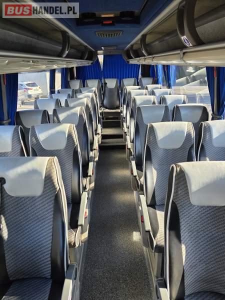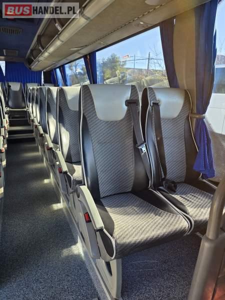 : fotele odchylane, oświetlenie indywidualne, nawiewy dyszowe, siateczki, ABS, ASR, tempomat, retarder, podnóżki, stoliczki, klimatyzacja, regulacja wysokości nadwozia, centralny zamek, podwójne szyby boczne, wspomaganie kierownicy, elektryczne lusterka, ogrzewanie stacjonarne