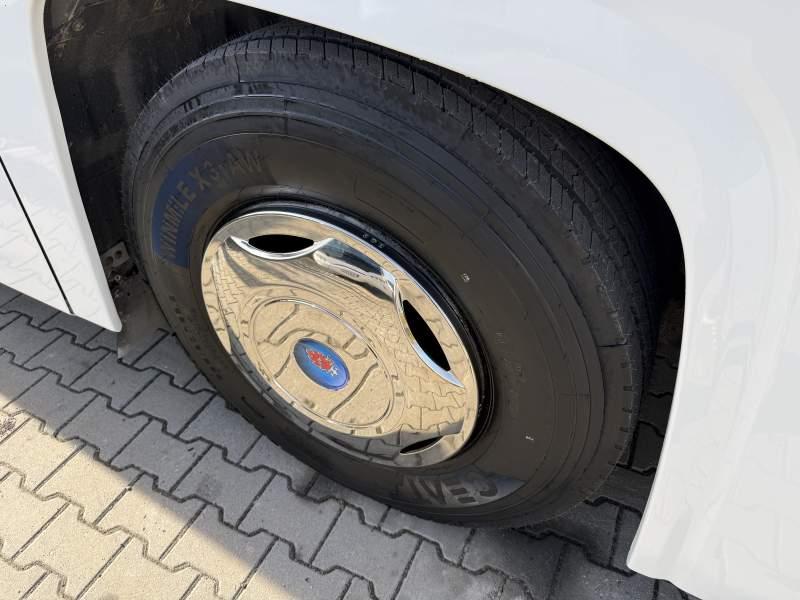 : WC, lodówka, kabina sypialna, fotele odchylane, nawiewy dyszowe, mikrofon, radio, regulacja wysokości nadwozia, centralny zamek, podwójne szyby boczne, elektryczne lusterka