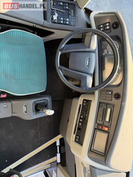 : WC, lodówka, caffebar, kabina sypialna, oświetlenie indywidualne, nawiewy dyszowe, siateczki, ABS, ASR, tempomat, retarder, podnóżki, stoliczki, mikrofon, klimatyzacja, radio, sejf, regulacja wysokości nadwozia, centralny zamek, podwójne szyby boczne, wspomaganie kierownicy, elektryczne lusterka, fotele odchylane i rozsuwane, DVD, ogrzewanie stacjonarne, ESP