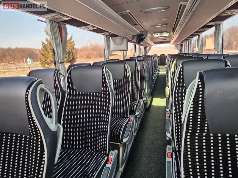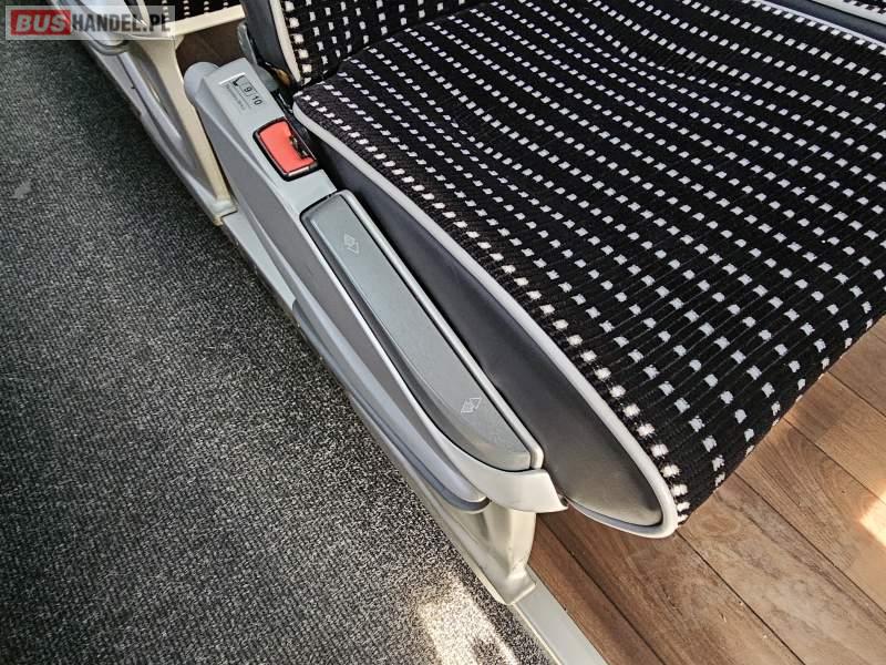 : klimatyzacja, video, WC, lodówka, caffebar, kabina sypialna, oświetlenie indywidualne, nawiewy dyszowe, podnóżki, stoliczki, siateczki, ABS, ASR, tempomat, retarder, CD, mikrofon, radio, fotele odchylane i rozsuwane, sejf, regulacja wysokości nadwozia, centralny zamek, podwójne szyby boczne, wspomaganie kierownicy, aluminiowe felgi, elektryczne lusterka, ogrzewanie stacjonarne, DVD, hak holowniczy, ESP