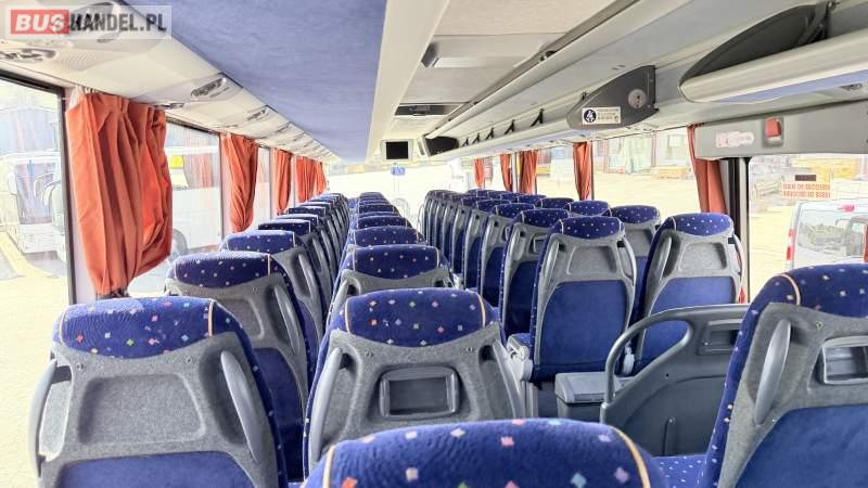 : lodówka, fotele odchylane, oświetlenie indywidualne, nawiewy dyszowe, siateczki, ABS, ASR, tempomat, retarder, podnóżki, stoliczki, mikrofon, klimatyzacja, radio, regulacja wysokości nadwozia, centralny zamek, podwójne szyby boczne, wspomaganie kierownicy, elektryczne lusterka, ogrzewanie stacjonarne