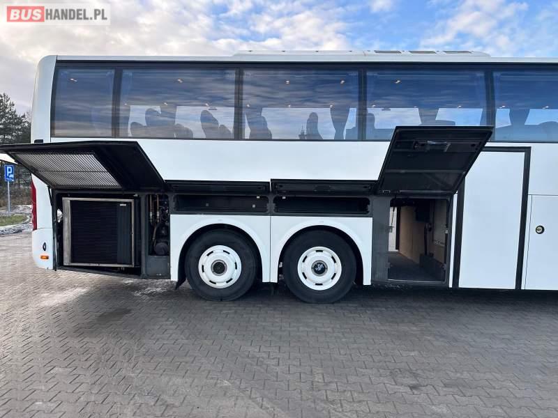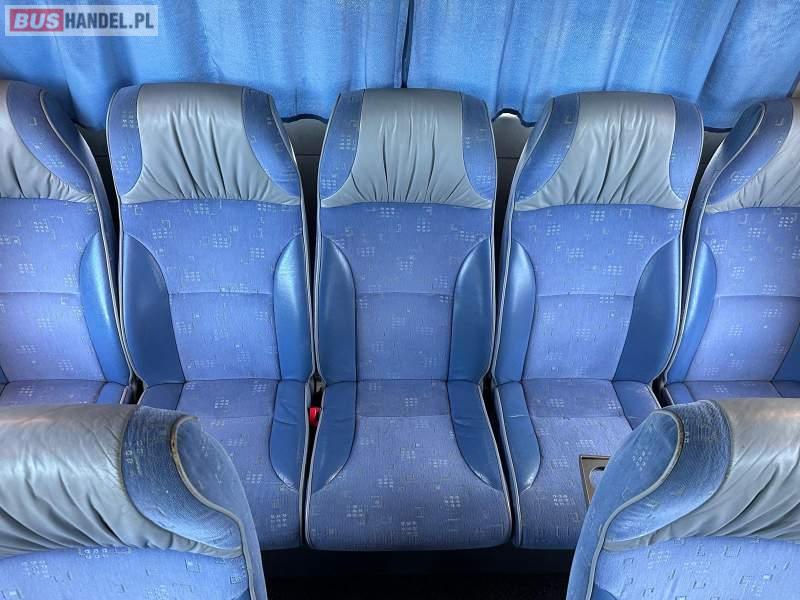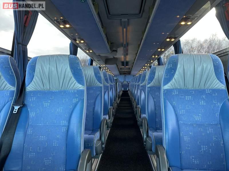 : klimatyzacja, video, WC, lodówka, caffebar, kabina sypialna, oświetlenie indywidualne, nawiewy dyszowe, fotele odchylane, podnóżki, stoliczki, siateczki, ABS, ASR, tempomat, retarder, telefon, nawigacja, CD, mikrofon, radio, fotele odchylane i rozsuwane, wyświetlacz matrix, sejf, regulacja wysokości nadwozia, centralny zamek, podwójne szyby boczne, wspomaganie kierownicy, aluminiowe felgi, elektryczne lusterka, ogrzewanie stacjonarne, DVD, hak holowniczy, ESP