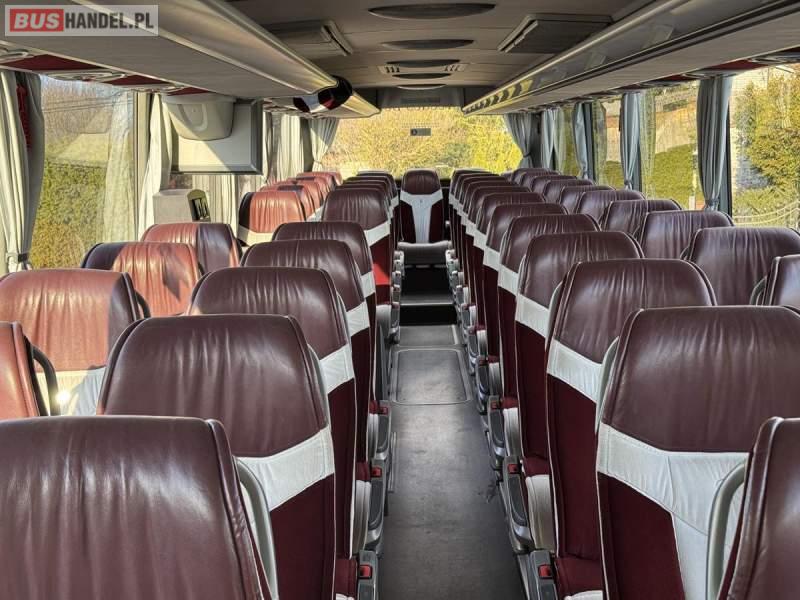 : WC, lodówka, fotele odchylane, oświetlenie indywidualne, nawiewy dyszowe, siateczki, ABS, ASR, tempomat, retarder, CD, podnóżki, stoliczki, mikrofon, klimatyzacja, radio, regulacja wysokości nadwozia, centralny zamek, podwójne szyby boczne, wspomaganie kierownicy, elektryczne lusterka, DVD, ogrzewanie stacjonarne, ESP