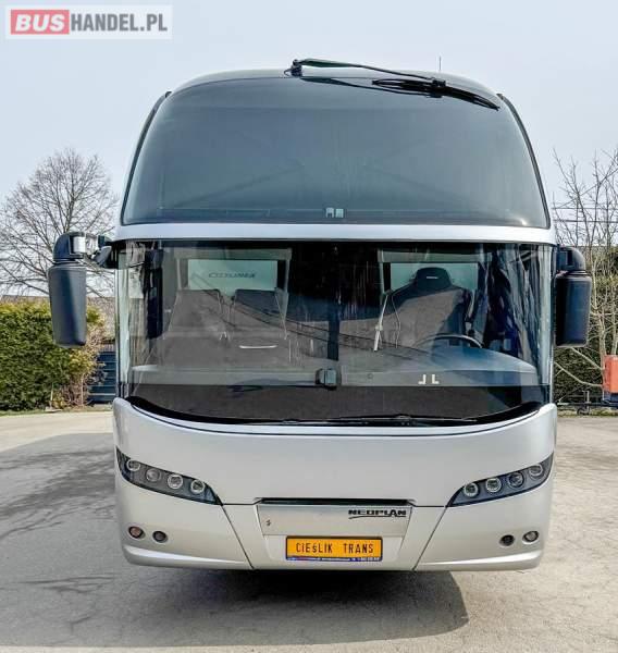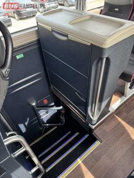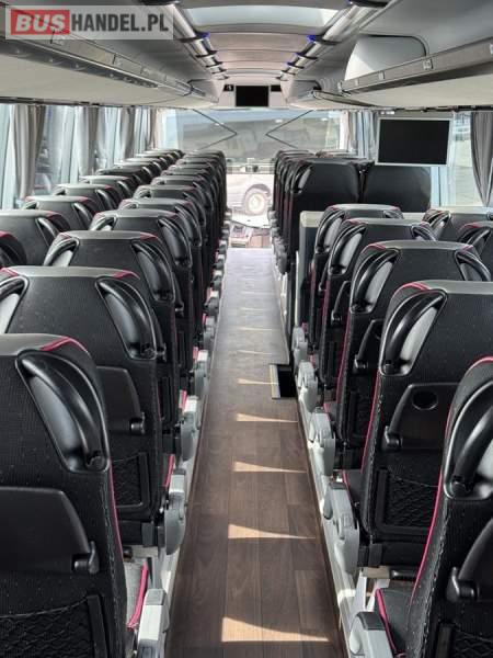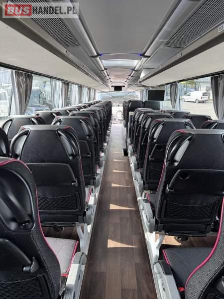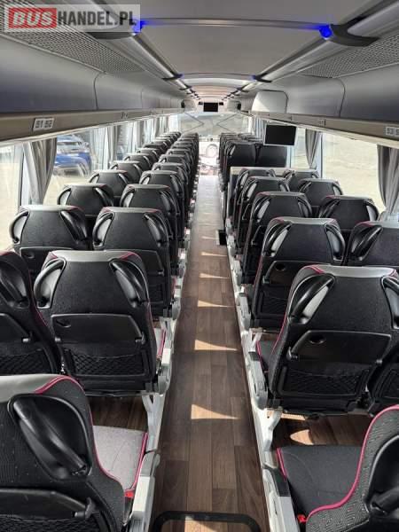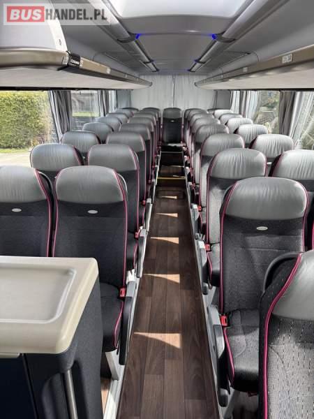 : WC, lodówka, caffebar, fotele odchylane, oświetlenie indywidualne, nawiewy dyszowe, siateczki, ABS, ASR, tempomat, retarder, nawigacja, CD, podnóżki, stoliczki, mikrofon, klimatyzacja, radio, sejf, regulacja wysokości nadwozia, centralny zamek, podwójne szyby boczne, wspomaganie kierownicy, elektryczne lusterka, DVD, ogrzewanie stacjonarne, ESP