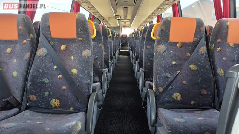 : video, lodówka, caffebar, oświetlenie indywidualne, nawiewy dyszowe, siateczki, ABS, ASR, tempomat, retarder, CD, podnóżki, mikrofon, klimatyzacja, radio, wyświetlacz matrix, rampa dla inwalidów, regulacja wysokości nadwozia, centralny zamek, podwójne szyby boczne, wspomaganie kierownicy, elektryczne lusterka, fotele odchylane i rozsuwane, DVD, ogrzewanie stacjonarne, ESP
