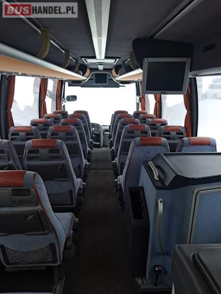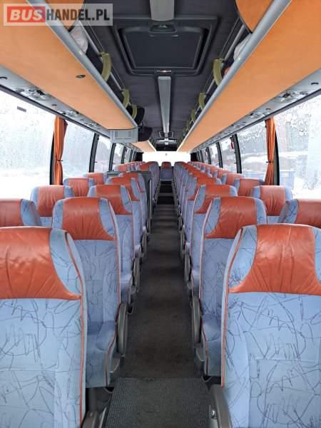 : video, WC, lodówka, caffebar, kabina sypialna, oświetlenie indywidualne, nawiewy dyszowe, siateczki, ABS, ASR, tempomat, retarder, CD, podnóżki, stoliczki, klimatyzacja, radio, regulacja wysokości nadwozia, centralny zamek, podwójne szyby boczne, wspomaganie kierownicy, elektryczne lusterka, fotele odchylane i rozsuwane, DVD, ogrzewanie stacjonarne, ESP