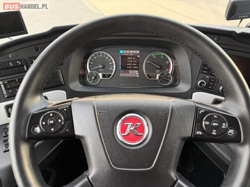 : video, WC, lodówka, caffebar, kabina sypialna, fotele odchylane, oświetlenie indywidualne, nawiewy dyszowe, siateczki, ABS, ASR, tempomat, retarder, telefon, nawigacja, CD, podnóżki, stoliczki, mikrofon, klimatyzacja, radio, kuchenka mikrofalowa, wyświetlacz matrix, sejf, regulacja wysokości nadwozia, centralny zamek, podwójne szyby boczne, wspomaganie kierownicy, elektryczne lusterka, fotele odchylane i rozsuwane, DVD, ogrzewanie stacjonarne, hak holowniczy, ESP