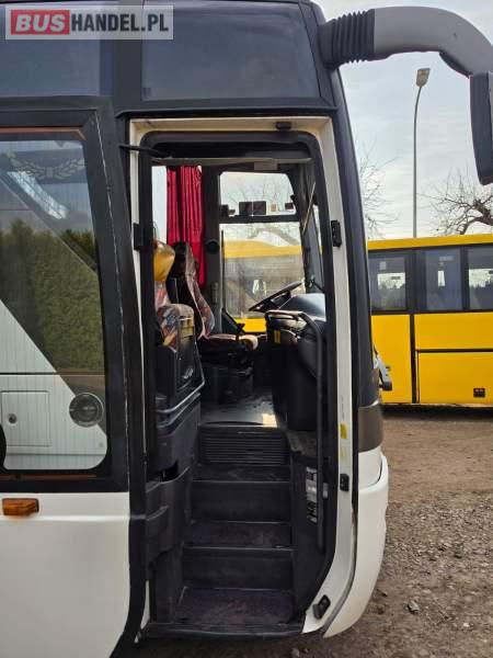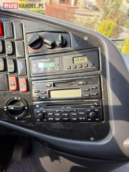 : video, WC, lodówka, caffebar, kabina sypialna, fotele odchylane, oświetlenie indywidualne, nawiewy dyszowe, siateczki, ABS, ASR, tempomat, retarder, CD, podnóżki, stoliczki, mikrofon, klimatyzacja, radio, regulacja wysokości nadwozia, centralny zamek, podwójne szyby boczne, wspomaganie kierownicy, elektryczne lusterka, DVD, ogrzewanie stacjonarne, hak holowniczy, ESP