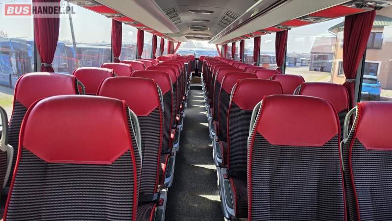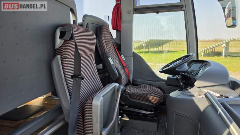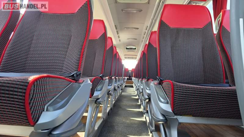 : video, WC, lodówka, caffebar, kabina sypialna, oświetlenie indywidualne, nawiewy dyszowe, siateczki, ABS, ASR, tempomat, retarder, CD, podnóżki, stoliczki, mikrofon, klimatyzacja, radio, sejf, regulacja wysokości nadwozia, centralny zamek, podwójne szyby boczne, wspomaganie kierownicy, elektryczne lusterka, aluminiowe felgi, fotele odchylane i rozsuwane, DVD, ogrzewanie stacjonarne, ESP