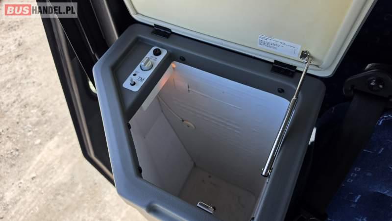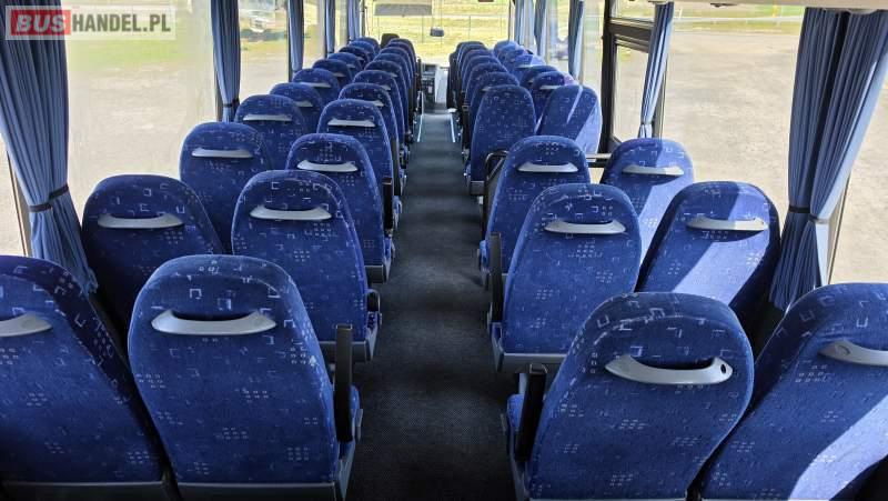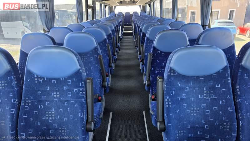 : klimatyzacja, lodówka, oświetlenie indywidualne, nawiewy dyszowe, fotele odchylane, podnóżki, ABS, ASR, tempomat, retarder, CD, radio, regulacja wysokości nadwozia, centralny zamek, podwójne szyby boczne, wspomaganie kierownicy, elektryczne lusterka, ogrzewanie stacjonarne