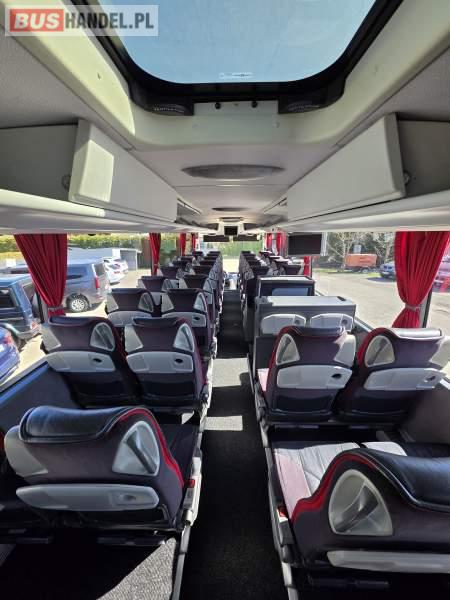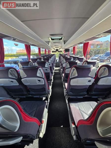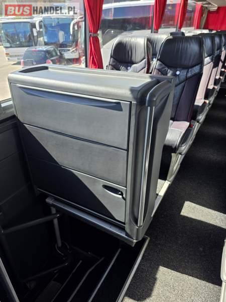 : WC, lodówka, caffebar, kabina sypialna, fotele odchylane, oświetlenie indywidualne, nawiewy dyszowe, siateczki, ABS, ASR, tempomat, retarder, podnóżki, stoliczki, mikrofon, klimatyzacja, radio, sejf, regulacja wysokości nadwozia, centralny zamek, podwójne szyby boczne, wspomaganie kierownicy, elektryczne lusterka, fotele odchylane i rozsuwane, DVD, ogrzewanie stacjonarne, ESP