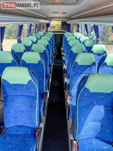 : lodówka, fotele odchylane, oświetlenie indywidualne, nawiewy dyszowe, siateczki, ABS, ASR, tempomat, retarder, podnóżki, stoliczki, mikrofon, klimatyzacja, radio, regulacja wysokości nadwozia, centralny zamek, podwójne szyby boczne, wspomaganie kierownicy, elektryczne lusterka, DVD, ogrzewanie stacjonarne, ESP
