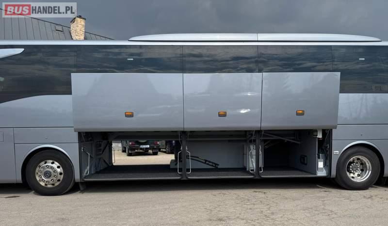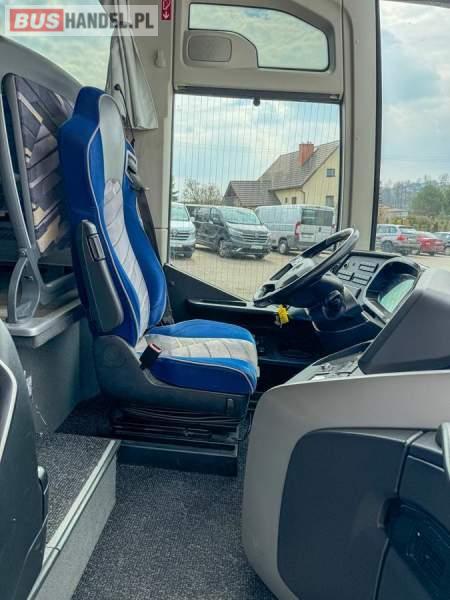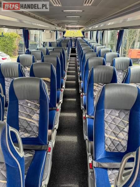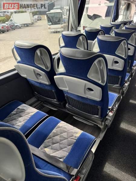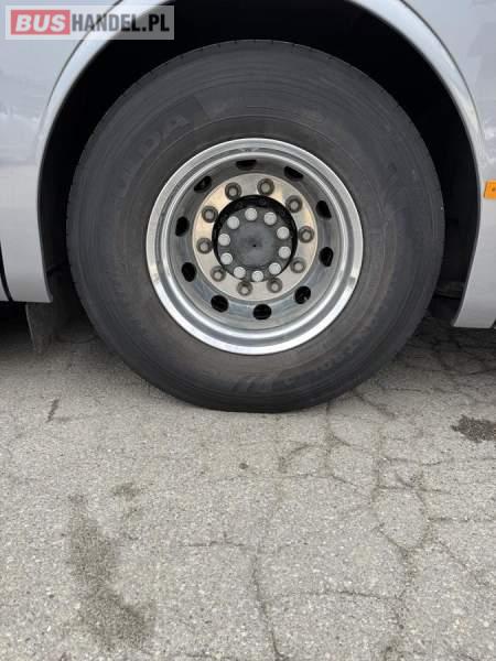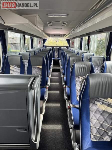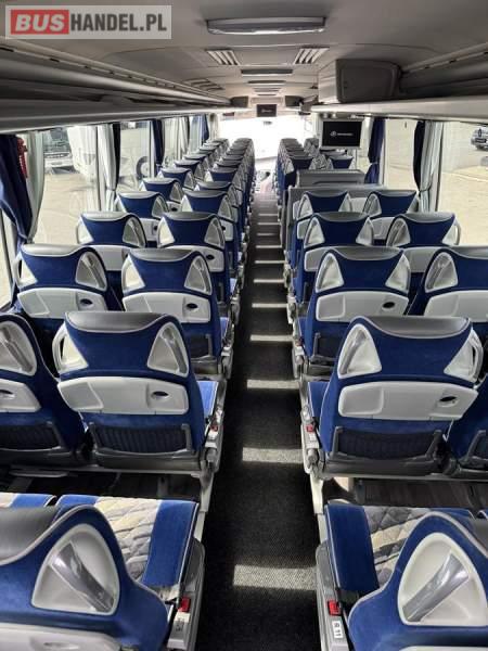 : WC, lodówka, caffebar, kabina sypialna, fotele odchylane, oświetlenie indywidualne, nawiewy dyszowe, siateczki, ABS, ASR, tempomat, retarder, podnóżki, stoliczki, mikrofon, klimatyzacja, radio, sejf, regulacja wysokości nadwozia, centralny zamek, podwójne szyby boczne, elektryczne lusterka, aluminiowe felgi, fotele odchylane i rozsuwane, DVD, ogrzewanie stacjonarne, ESP