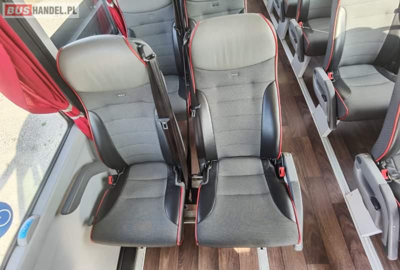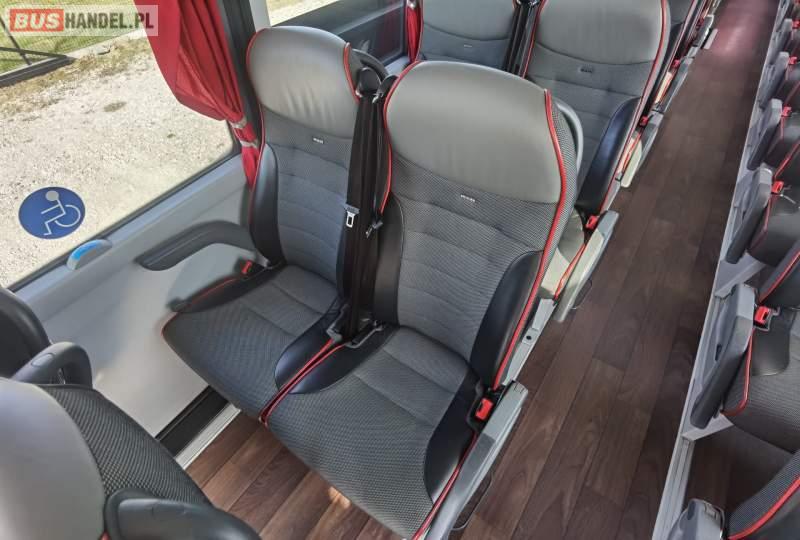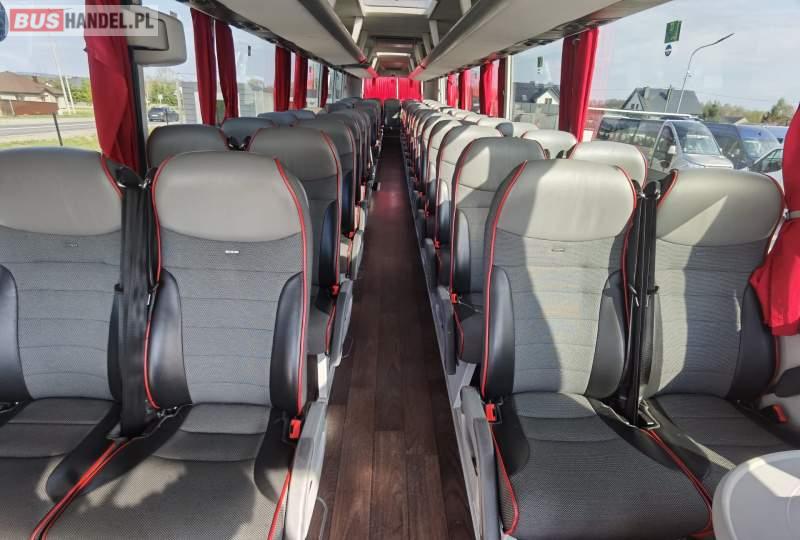 : video, WC, lodówka, fotele odchylane, oświetlenie indywidualne, siateczki, ABS, ASR, tempomat, retarder, nawigacja, CD, stoliczki, mikrofon, klimatyzacja, radio, regulacja wysokości nadwozia, centralny zamek, podwójne szyby boczne, wspomaganie kierownicy, elektryczne lusterka, aluminiowe felgi, DVD, ogrzewanie stacjonarne, ESP