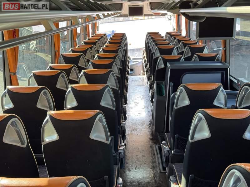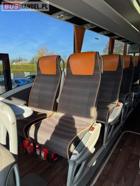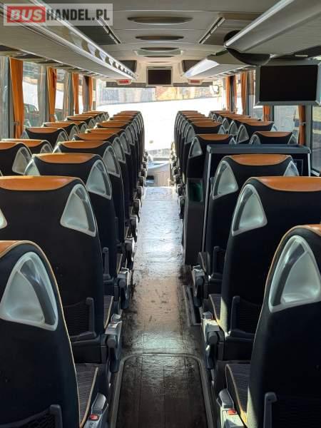 : klimatyzacja, WC, lodówka, oświetlenie indywidualne, nawiewy dyszowe, fotele odchylane, podnóżki, siateczki, ABS, ASR, tempomat, retarder, CD, mikrofon, radio, regulacja wysokości nadwozia, centralny zamek, podwójne szyby boczne, wspomaganie kierownicy, elektryczne lusterka, ogrzewanie stacjonarne, DVD, ESP